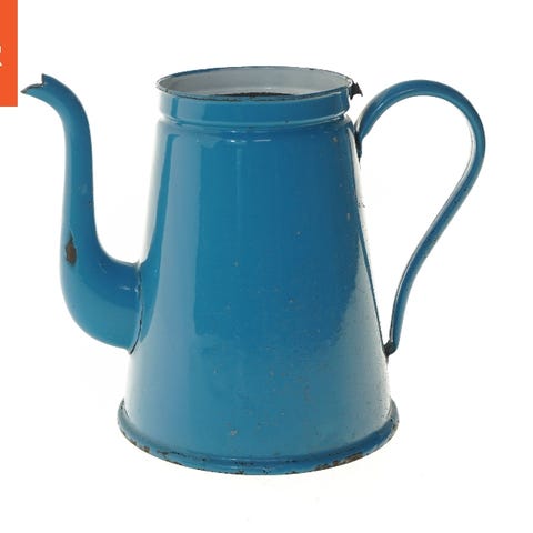 Tekande i blå farve med hvidt ternet mønster omkring korpus og låg. Klassisk rund form med hank og hældetud. Velegnet til servering af te i køkken eller spisestue. Materialet fremstår som glaseret keramik eller stentøj. Designet giver et dekorativt udtryk, som også kan bruges som pynt på bord eller hylde.