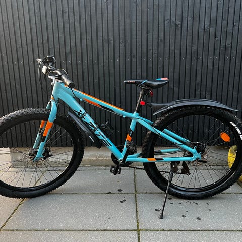 Cyklen er købt fra ny i 2021, men har ikke været brugt særlig meget. Har altid stået under tag når den ikke har været i brug.