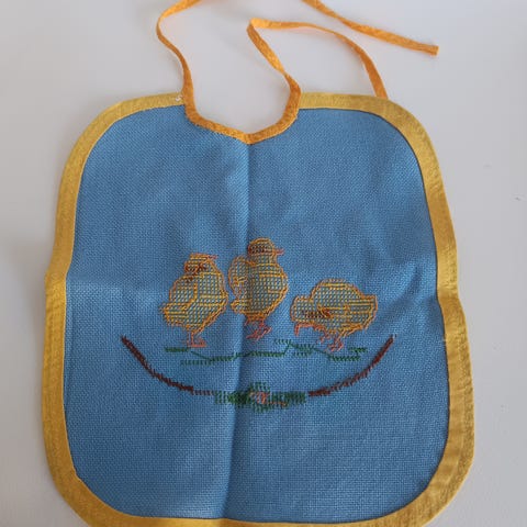 Vintage broderet hagesmæk. Håndarbejde med påskemotiv. Håndlavet påskesmæk. broderet påske smæk. Smæk broderet med korssting. Hagesmæk med broderi. Hagesmæk med korssting. Hagesmæk med påske broderi. Broderet Hagesmæk. Smæk med broderi. Krydssting. Krydstrådssting. Håndbroderet korsting. Vintage Hagesmæk. Håndlavet Hagesmæl. Påske smæk. Hagesmæk med broderet dyremotiv