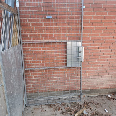 Galvaniseret metalhegn med låge og beslag