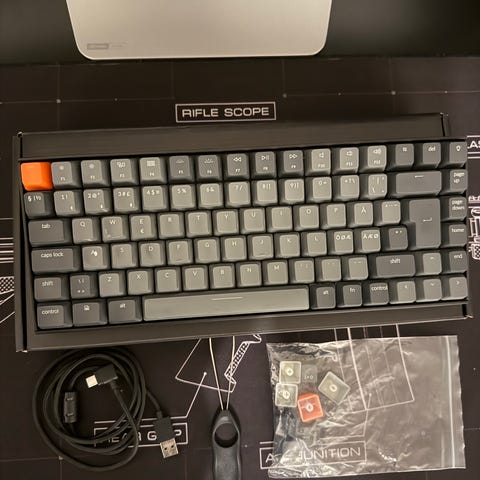 OBS: batteri er taget ud (for at gøre plads til custom mods der får tastaturet til at lyde og føles bedre) men kan genmonteres.