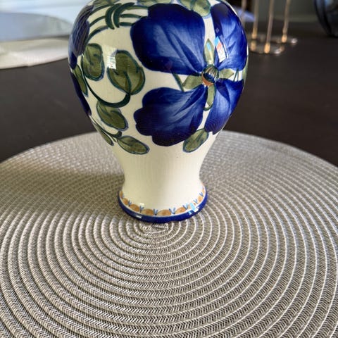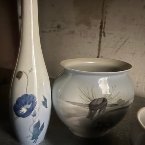 2 vaser fra “ukrudt” hvid med rødt blomstermotiv keramik