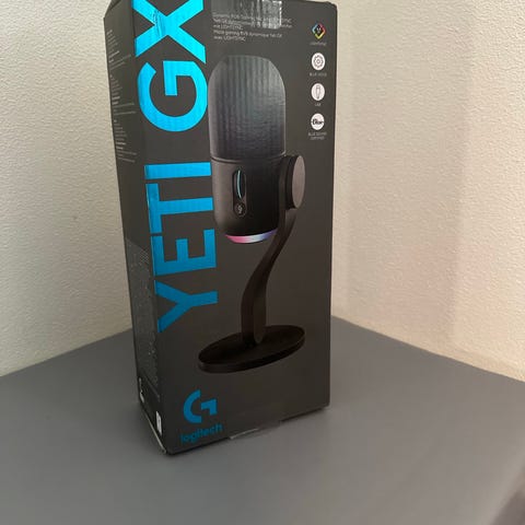 Logitech Yeti Orb mikrofon i hvid. Kugleformet USB-mikrofon med aftageligt stativ med tre ben. Mikrofonen tilsluttes via USB-kabel (medfølger på billederne) og er egnet til brug ved computer, f.eks. til tale, møder eller gaming. Designet med Logitech G-logo på fronten og kompakt størrelse, der passer på skrivebordet.