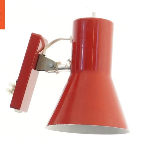 Vintage væglampe med en længde på 67 cm og en bredde på 30 cm. Lampen har en rustik, sort overflade med tydelige tegn på brug. Lampens arm er justerbar, hvilket gør den ideel til at rette lys mod forskellige områder. Den har en elektrisk ledning, men der er ingen pære inkluderet.