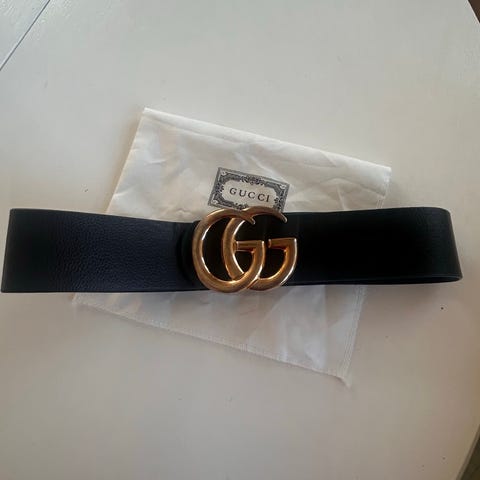 Gucci bælte i sort læder med sølvfarvet metalspænde, størrelse 85 / 34, modelkode 114874 . 480199 . 85 . 34. Klik på den blå "gå til varen" knap, for at købe eller byde på denne vare. Den samlede pris vil blive vist inden du afgiver dit bud.