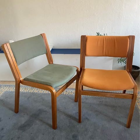 Cool vintage stole i chrom og med blåt sæde og rygstykke i "blødt" rillet gummi.