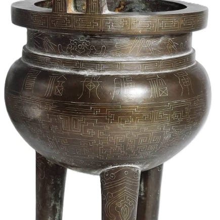 En dejlig antik kinesisk røgelsescensor af høj kvalitet i bronze, der forestiller en siddende Hjort med baglæns vendt hoved, der bærer en bladgrøn gren, med grene og blade, stående på tre ben og ét hvilende. Håndlavet i oldtiden Kina, under Qing-dynastiet, 1700-tallet til meget tidligt i 1800-tallet. Pragtfuld patina efter alder.