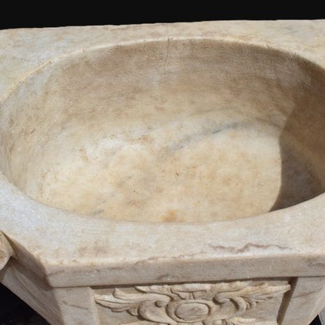 En skulptur af Carrara-hvid marmor, dateret til slutningen af 1800-tallet til begyndelsen af det 20. århundrede, der forestiller et heraldisk løveemblem, mål 57 × 45 × 9 cm, uunderskrevet og i god stand. Klik på den blå "gå til varen" knap, for at købe eller byde på denne vare. Den samlede pris vil blive vist inden du afgiver dit bud.