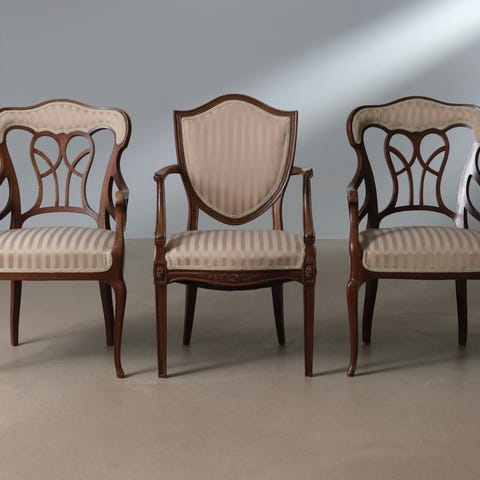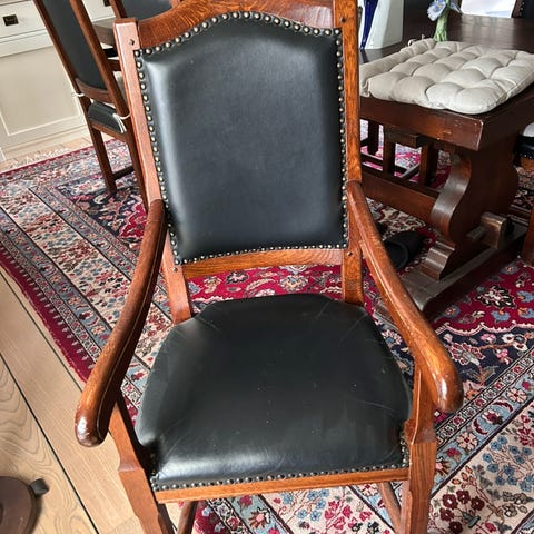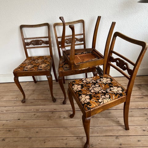 6 stk. salonstole købt hos OLSSON Møbler m/ Ambra sort læder sæder i Sæbebehandlet bøg.