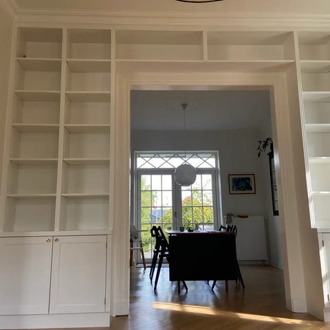 Vi kommer ud og måler op så målene bliver rigtige. Også vitrineskabe.