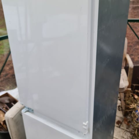 Bosch køle-fryseskab i hvid. Skabet har køledel øverst og frysedel nederst. Fritstående model, egnet til almindeligt køkkenbrug til opbevaring af dagligvarer og frostvarer. Klassisk hvid front, der passer ind i de fleste køkkener.