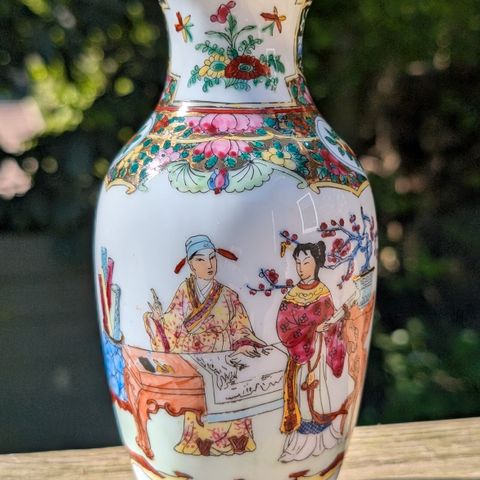 Japansk porcelæn, 65 år gl., b: 11 d: 11 h: 30, Smuk ældre kinesisk vase(GoldiMare) hand painted.
