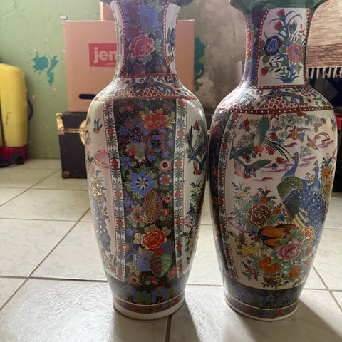 2 stk. meget smukke, orientalsk inspirerede vaser i perfekt stand. Mål: 25 cm høje. Nedarvet. Ukendt herkomst. Sælges samlet.