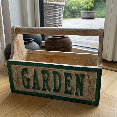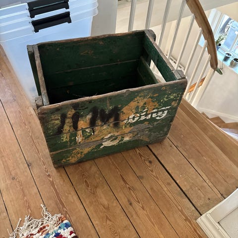 Kassen er vintage, som det fremgår af billederne. Det betyder, at maling er skallet af hist og her, træet er knækket af forskellige steder - alt sammen dét, som giver charme.