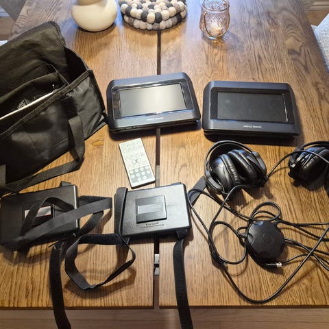 En Prosonic Dual Skærm DVD afspiller til bilen. Brugt på en rejse. Alle dele medfølger.