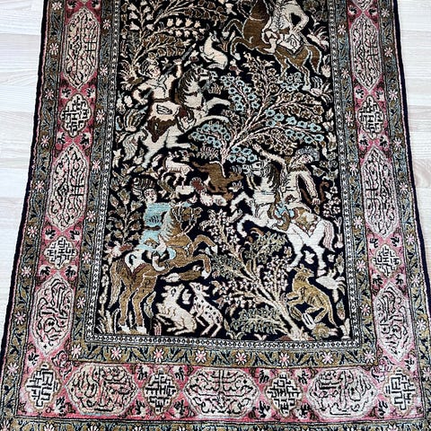 Ægte Persisk silke tæppe , silke på silke med livet træ motiv, tæpper er omkring 1960 har aldrig været på gulvet 73x55