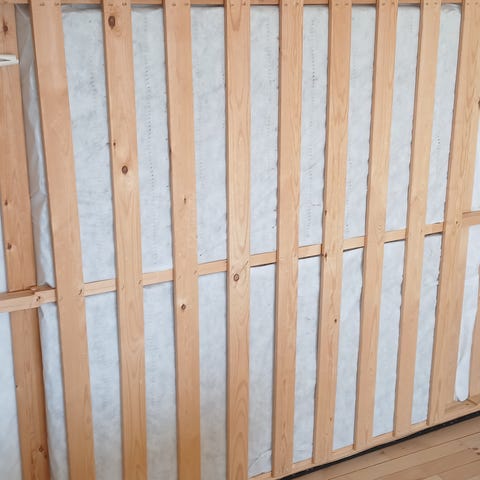 Seng gives væk, består af 2 boxmadrasser, som kan sættes sammen eller bruges enkeltvis med tilhørende ben i træ.