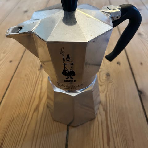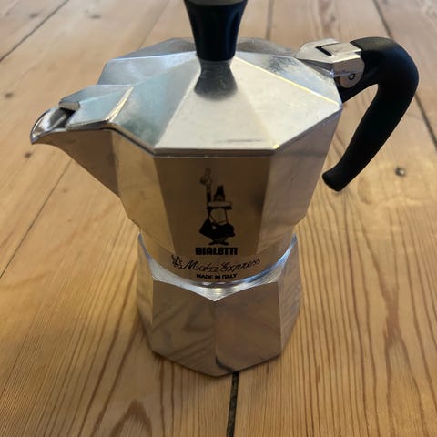 Sælger en stor og original Bialetti Moka Express espressokande (9 kopper). Klassisk italiensk design i topkvalitet – Made in Italy 🇮🇹