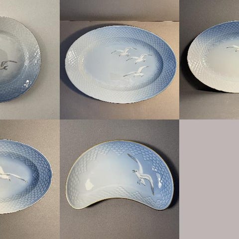 Mågestel m/guldkant - Stor sukkerskål, flødekander og fade - Jeg Sender gerne