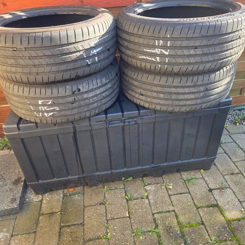 Sælger 4 stk. Bridgestone Turanza T005 sommerdæk. Dækkene har kun kørt 18 km. De sad på en ny MG4 Luxury, men blev afmonteret ved levering, da bilen fik helårsdæk.