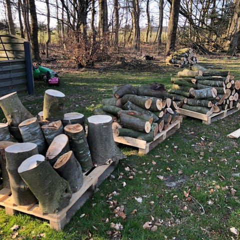 Blandet løvtræsbrænde i brændestykker og grene. Stammer og grene er skåret i forskellige længder og tykkelser, egnet til videre opskæring eller kløvning til brænde. Velegnet til brug i brændeovn, pejs eller bålsted, afhængigt af yderligere tilpasning af længde og størrelse efter behov.