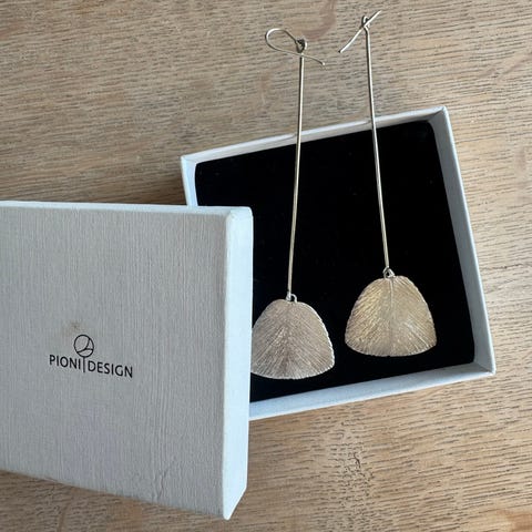Smukke sølv øreringe og broche fra finske Pioni design.