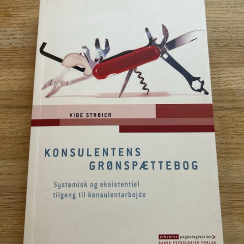 Dansk Psykologisk Forlag Konsulentens Grønspættebog bog. Fagbog om konsulentarbejde med fokus på systemisk og eksistentiel tilgang. Indeholder teoretiske gennemgange, modeller og værktøjer til konsulentpraksis. Henvender sig til konsulenter og andre, der arbejder med organisations- og udviklingsprocesser.