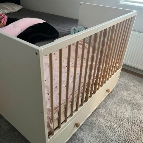 Sælger pga flytning en Quax Mila tremmeseng i klassisk hvid. Sengen er i rigtig god stand og fremstår velholdt med kun minimale brugsspor. Medfølger madrass