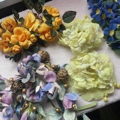 3 dekorative genstande i afrikansk stil: et par små lysestager med knælende figurer med armene hævet, samt en afrikansk ansigtsmaske til vægophæng. Sort/mørkebrun støbt materiale med gyldne detaljer på masken. Ophængsbeslag på bagsiden af masken. Sælges samlet.