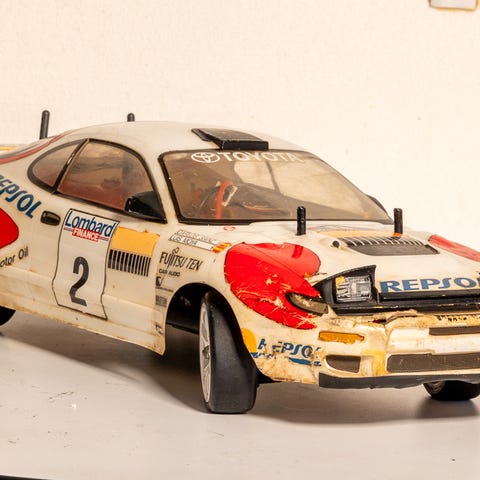 Bilen er opgraderet med kuglelejer, og der er sat ESC i, og SRT styreservo.