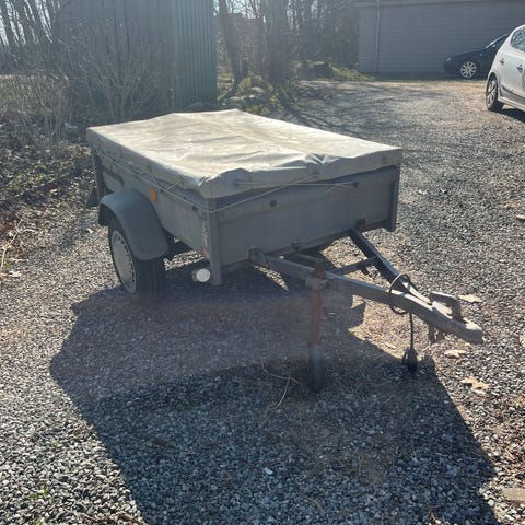 T 500 L 400 trailer i OK stand dæk lys lejer er ok ingen plade og ingen papir på den har fået den i bytte bund trænger til udskiftning mål 150 cm x 100cm
