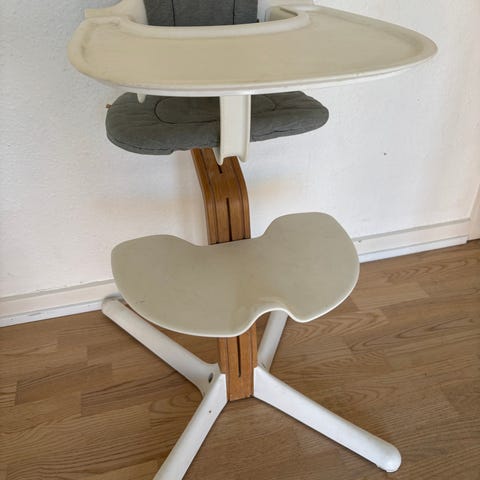 STOLEN ER IKKE BRUGT RET MEGET, SÅ FREMSTÅR NÆSTEN SOM NY. DEN VEJER 5 KG. OG KAN SENDES. OG SÅ ER DEN NYVASKET, OG ER LIGE KLAR TIL AT BLIVE BRUGT!!!! DEN SÆLGES MED BØJLEN!!!! Stokke® Nomi® er designet af Peter Opsvik og fokuserer på at inspirere til aktiv siddestilling med sit lette, organiske design. Den er kendt for sin brugervenlighed og sikkerhed.
