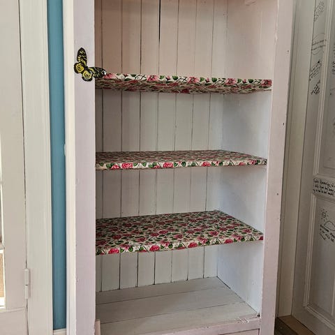 Sjælfuldt karlekammerskab med skuffe samt fire hylder.