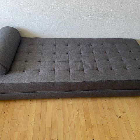 2 pers. Gæsteseng, beige velour, har en lille plet, se billed