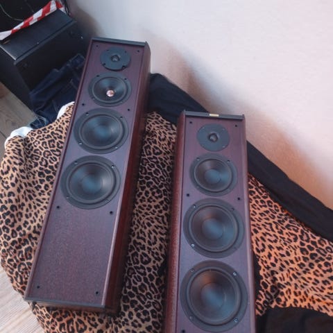Stereopakke bestående af flere højttalere i original emballage. Pakken flere ens højttalerenheder samt en mindre enhed, som kan fungere som center- eller ekstra højttaler. Velegnet som grundlag for et hjemme-stereo- eller surround, hvor der ønskes flere matchende højttalere i samme design. Samlet pris
