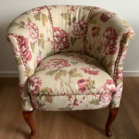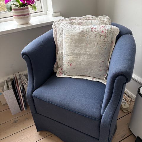 Lænestol med fodskammel. Begge har vippefunktion.