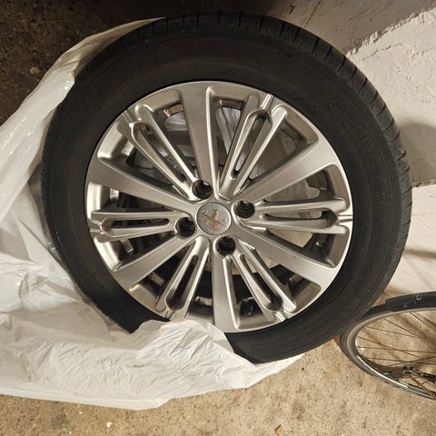 Originale Peugeot Alu fælge “Elborn” med sommerdæk (5 mm tilbage)