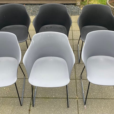 Sorte højkvalitets plaststole med armlæn og helsæde i formstøbt plast.