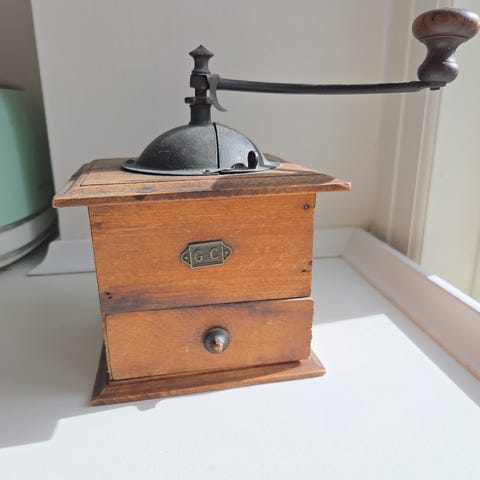 La Cafetière kaffemøllen er en moderne udgave af den traditionelle kaffemøllen. Den er med kobber finish og med et træhåndtag, der gør kværnen nem at styre. Formalingsgraden kan indstilles, så du kan male kaffe til stempelkande, filterbryg osv.