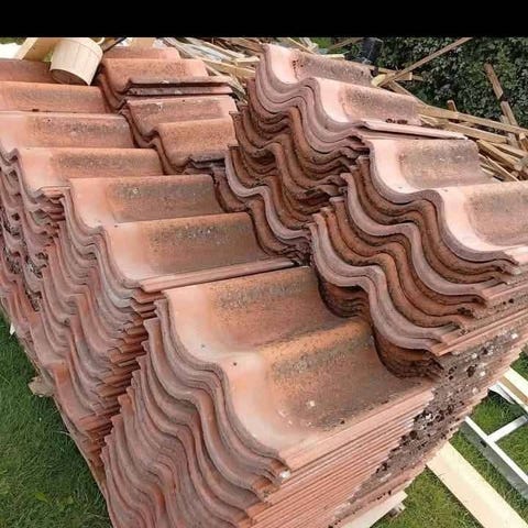 Rester fra en gammel indre væg, der er blevet fjernet ifm renovering. Huset er fra 1945 og stenene sikkert også derfra. De ser fine ud, men skal selvfølgelig renses for mørtel.