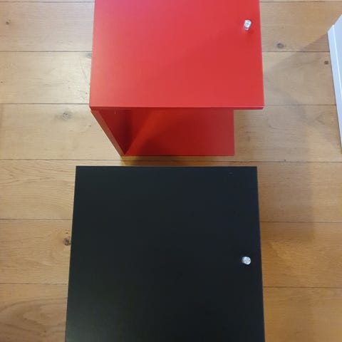 5 kallax indsatser. 4 skabslåger og 1 skuffearrangement med 2 skuffer