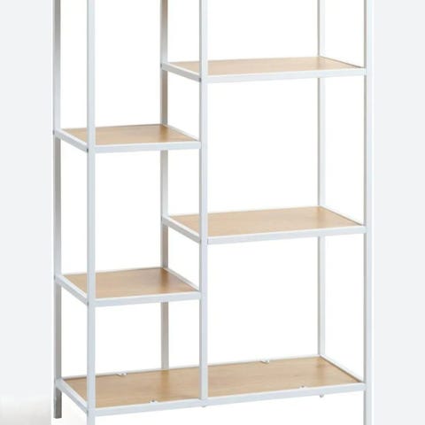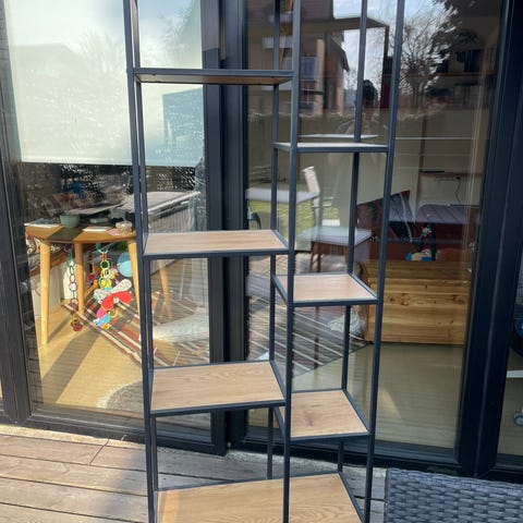 Har tre flotte reoler i sortmalet stål og eg som måler 70x109 og en som måler 70x178