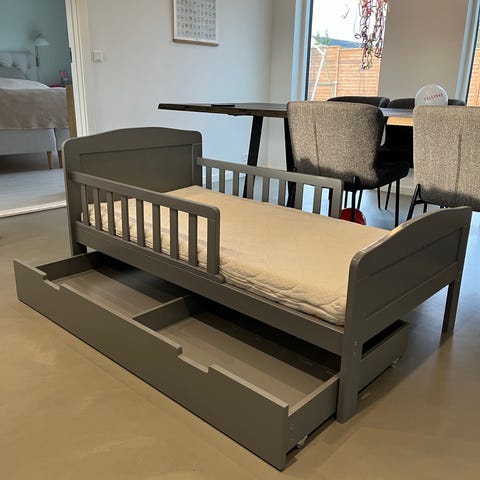 børnseng med skuffe lyserød