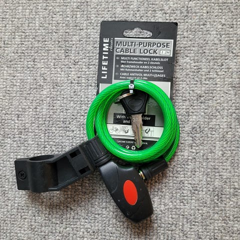 3 stk. meget kraftige Abus 1000 granit Steel-O-flex wirelåse med ens nøgler, der medfølger nøglekort og 6 ens nøgler- 300 kr pr stk eller 750 kr samlet.