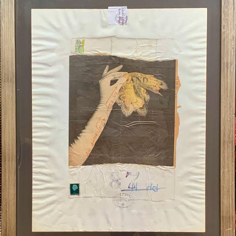 Collage af billedkunstner Viktor IV (Walter Karl Glück) i ramme. 8. marts 1970.