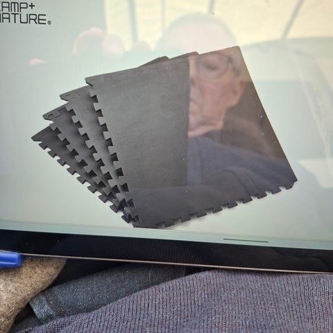 Sælger et solidt og praktisk campinggulv fra Dancover (oprindeligt dansegulv), som har været brugt som gulv i fortelt.