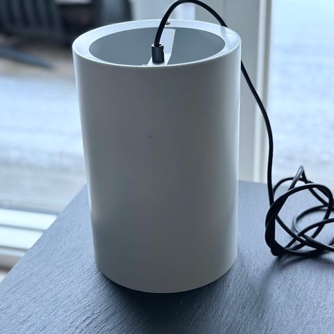 2 sorte design lamper fra 1970’erne. Fog & Mørup “Sektor” lamper af Jo Hammerborg. Pendler, loftlamper, lampespot, skorstenspendler. Cylinder metal skærme indvendig hvid, nederst den grå kant. H: 21,7 cm. D: 14,1 cm. Brugt stand, brugsridser.