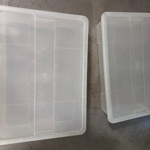 75kr for 2 stk. store opbevarings kasser uden hjul.
