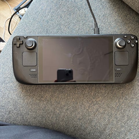 Steamdeck OLED 512gb fra marts 2025. Der kommer en 1tb MicroSD med samt oplader og den officielle Steam Dock, så der kan tilkobles to skærme, mus, keyboard o.lign.
