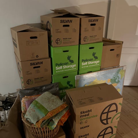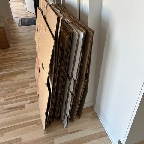 4 store og 4 små flyttekasser sælges samlet med afhentning i dag, søndag den 22 marts.